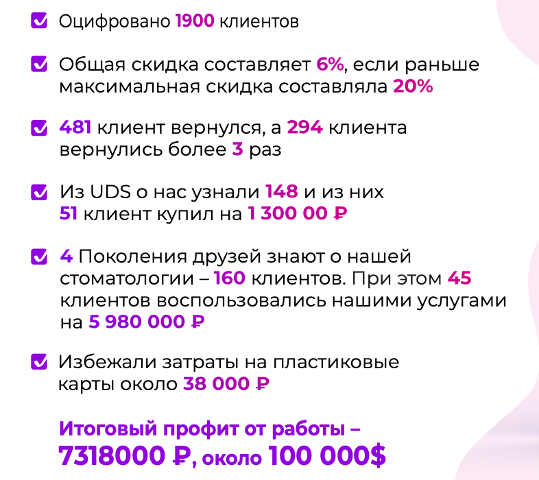 Средний чек 85 000 руб. 105 человек на 1 потоке